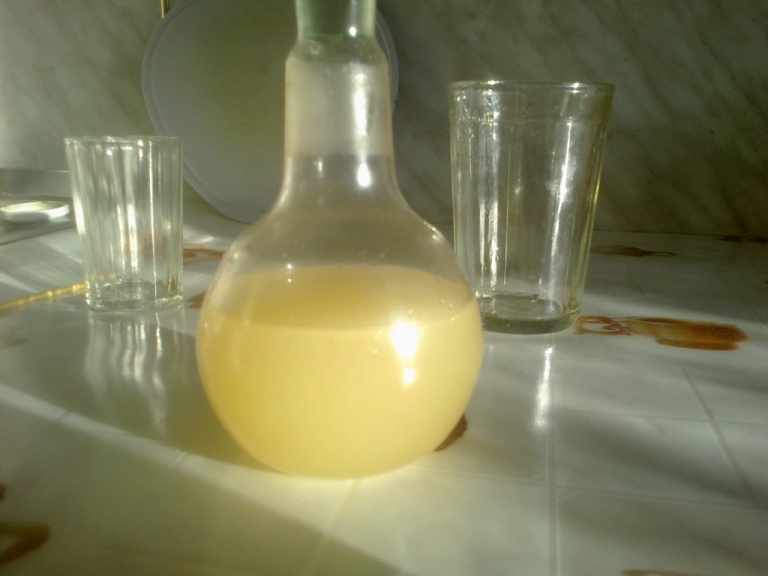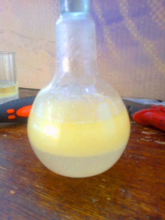 3. После завершения реакции смеси необходимо дать отстояться, чтобы максимально очистить от примесей, после чего можно собрать сверху готовое топливо. Полученное топливо необходимо отфильтровать (желательно 5-микронный фильтр). Топливо не должно быть мутным  и должно иметь нейтральный pH.